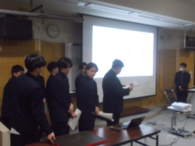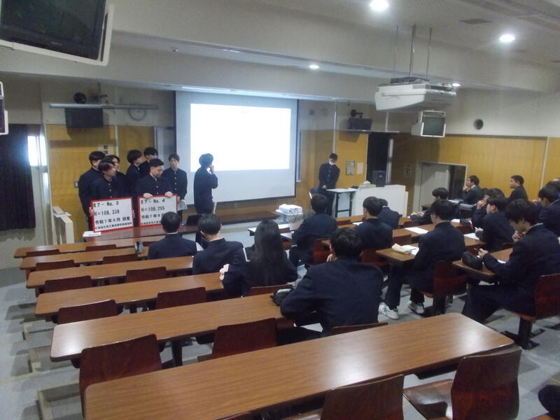 1月20日(火)、3年建設科が課題研究発表会を1・2年生に向けて行いました。