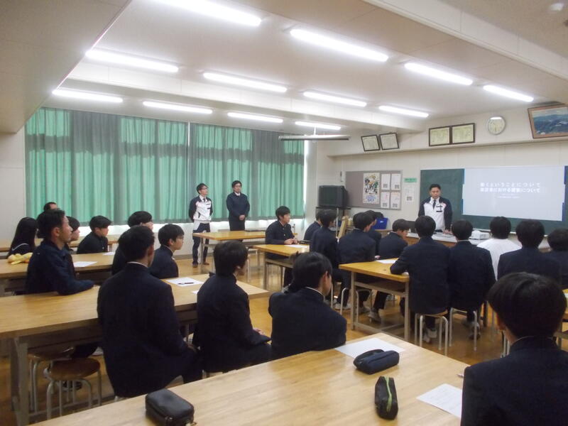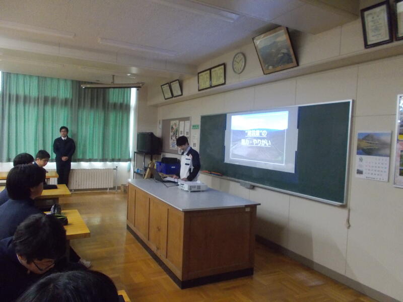 午後からは、東京エネシス株式会社様によるエネルギーに関する出前授業が行われました。現場での仕事の様子や東京での働き方など、社員の方から直接お話を伺うことができ、生徒たちは将来の進路を考える貴重な機会となりました。
