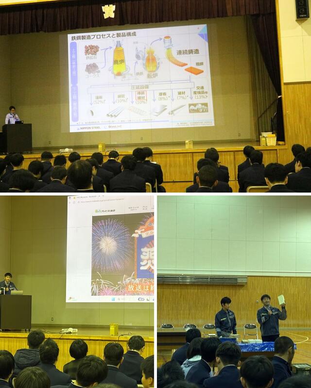 1・2年生の電子機械科と電気科を対象に、日本製鉄株式会社北日本製鉄所室蘭地区、幌清株式会社、日鉄テックスエンジ株式会社、大和工業株式会社による企業講話を実施しました。