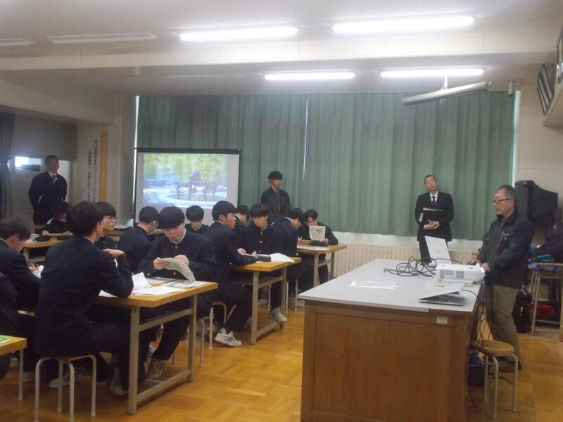 来年度から始まる、進路活動に向けて幅広い視野を持ってもらうため、オホーツク二建会様、北海道開発局網走開発建設部様、北海道オホーツク総合振興局様をお招きし、土木・建築の民間企業・公務員の仕事内容を教えていただきました。