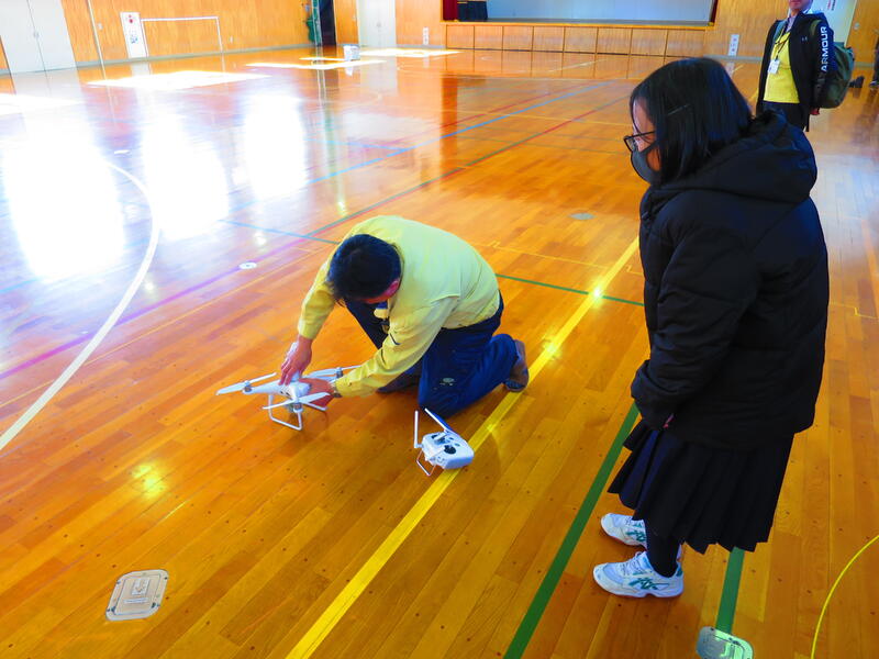 3・4時間目はドローン、人工衛星を利用したGPS、ドローンのシュミレーターゲームなどを実際に使わせてもらい、生徒は班ごとに分かれ各々最新技術を体験していました。