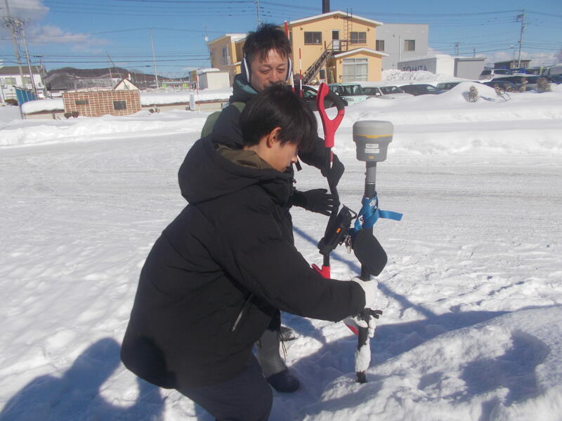 GPSを使った体験では、屋外で行われ雪の中に隠された宝物を探しだす体験を行いました。