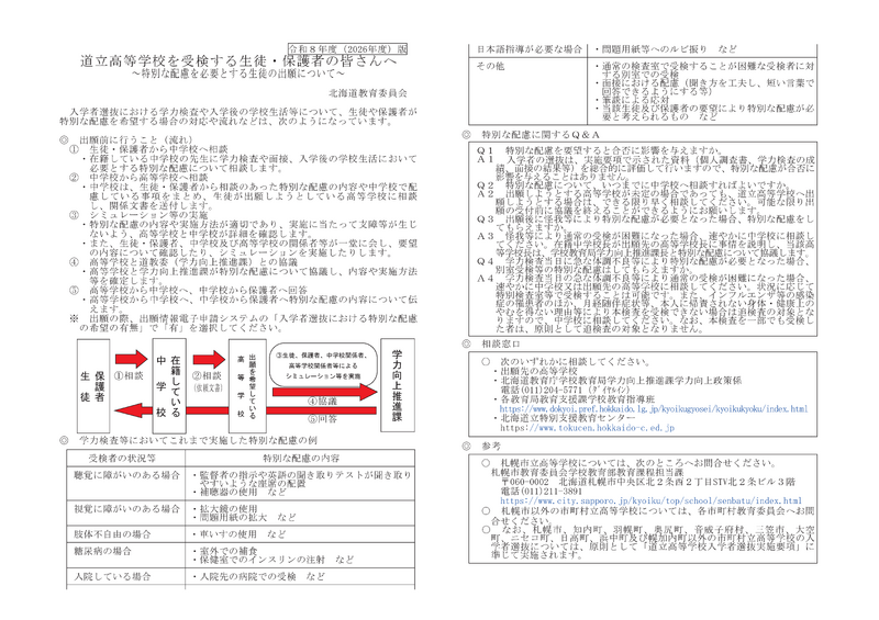 • 道立高等学校を受検する生徒・保護者の皆さんへ